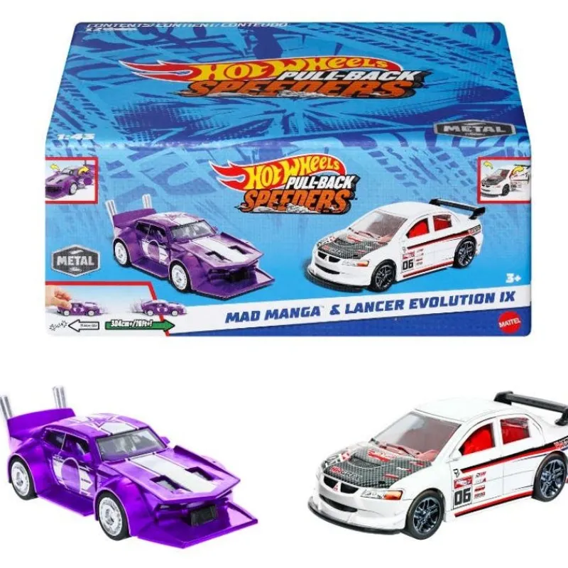 Hot Wheels Pull-Back Speeders Modelos: 1 Mad Manga & Lancer Evolution IX. Cuentan con Sistema de Fricción<Mattel Sale