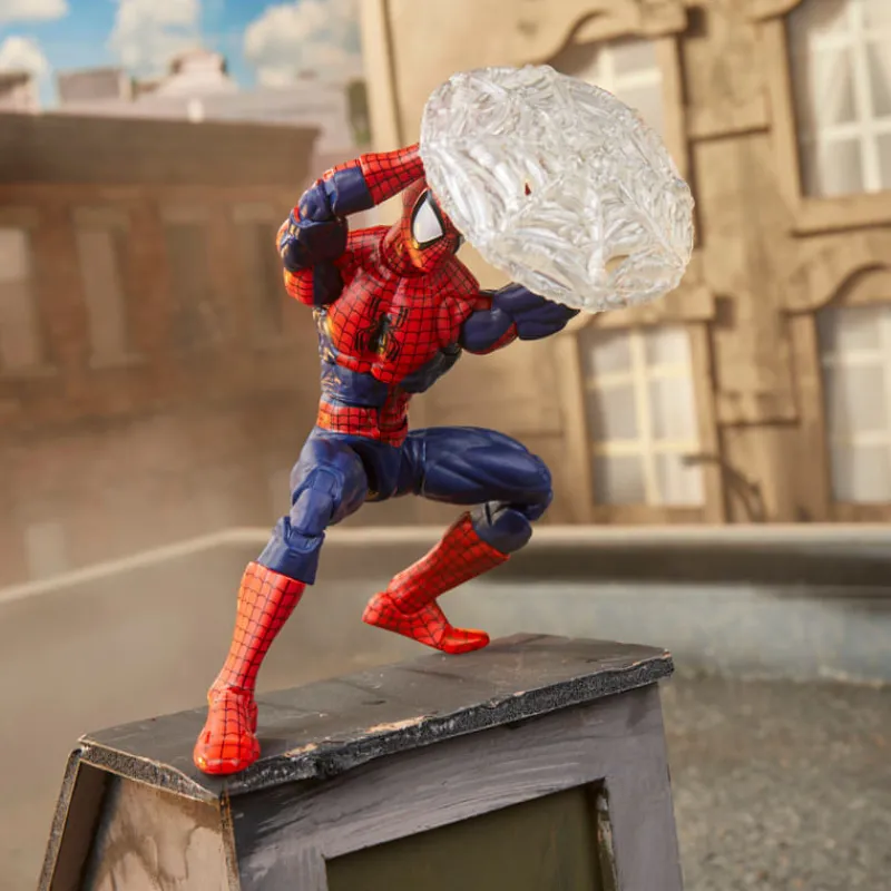 ¡Trae la emoción y la maravilla del Universo Marvel a tu colección con la figura de acción Maximum Series Spider-Man de la línea Marvel Legends de Hasbro! Esta figura de colección ha sido diseñada para verse igual al personaje de los cómics de Spider-Man de Marvel. Las figuras Marvel a escala de 15 cm cuentan con cabeza, brazos y piernas totalmente articulables. El set de figura de acción Maximum Series viene con 20 accesorios, incluyendo; cabeza alternativa de Peter Parker sin máscara; cabeza alternativa de Spidey con accesorios de sentido arácnido removibles; 2 manos en pose de lanzamiento; 2 manos lanzando telarañas; 2 manos trepamuros; 2 manos con aracno-lanzadores visibles; 2 manos lanzatelarañas que pueden agarrar las 2 telarañas incluidas (22,5 cm); mochila; aracno-escudo que se encaja en el brazo de la figura; trampa de telaraña y efecto de combate con base de exhibición articulable. Las figuras de acción Marvel de Hasbro a escala de 15 cm son ideales para exhibirlas en las colecciones de los fans. Recrea escenas inspiradas en los cómics del Hombre Araña en tu colección con las figuras de acción Marvel Legends.