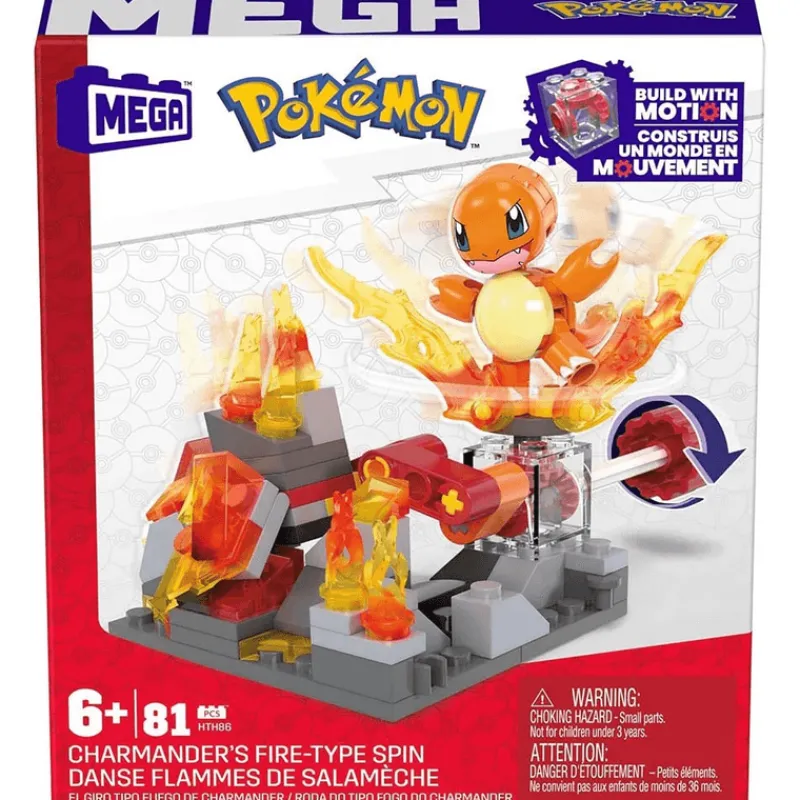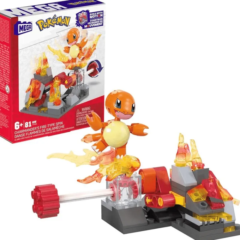 ¡Libera el poder del fuego! Con este set de construcción MEGA Pokémon El giro tipo fuego de Charmander. Construye el set y gira la manivela para activar el movimiento giratorio de Charmander y ver las llamas en acción. Este set se puede conectar con otros sets de Adventure Builder para construir el mundo perfecto de Pokémon en movimiento. Cada set se vende por separado y está sujeto a disponibilidad.