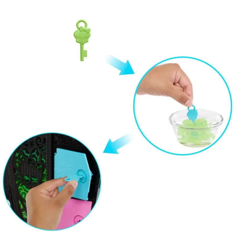 Ghoulia de Monster High ofrece estilo y misterio en cada look neón. Ideal para los pequeños fans que buscan personajes únicos en sus aventuras.