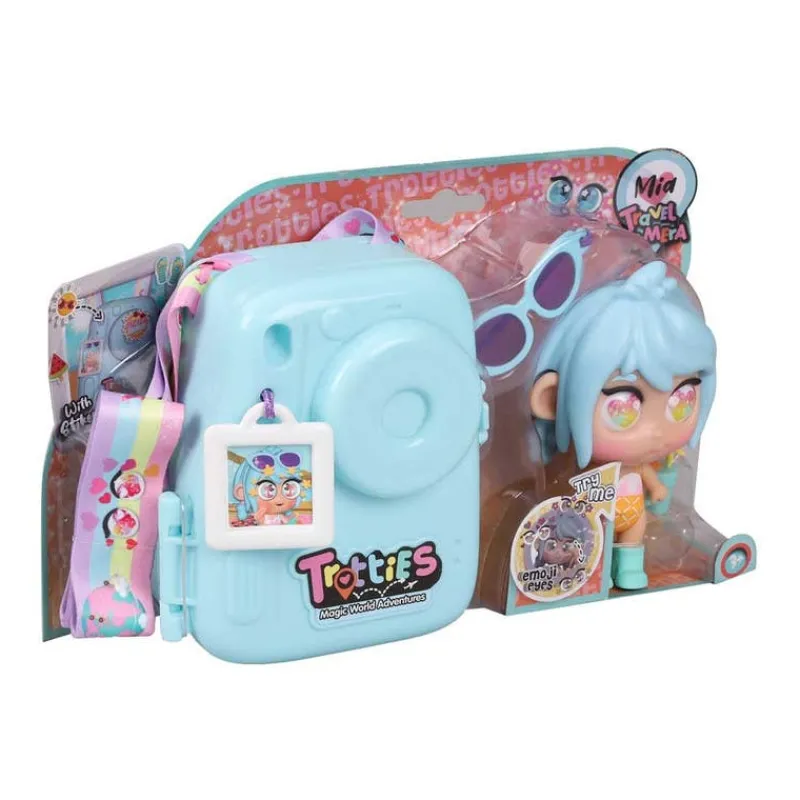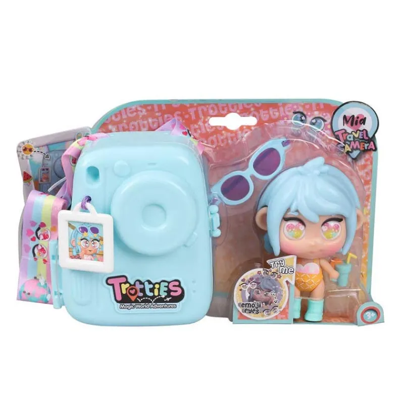Viaja con Mia y su Cámara de Viaje, parte de la colección de las mini Trotties. Este juguete es ideal para juegos de exploración y fantasía, donde las niñas pueden inventar emocionantes historias de viaje.