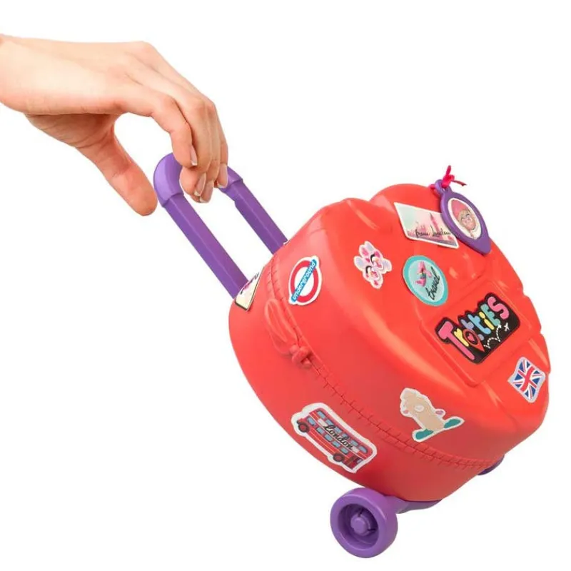 Lucy con su maleta de viaje y ojos emoji está lista para recorrer y explorar nuevas historias. Ideal para fomentar la creatividad y las habilidades narrativas en las niñas, añadiendo diversión al tiempo de juego.