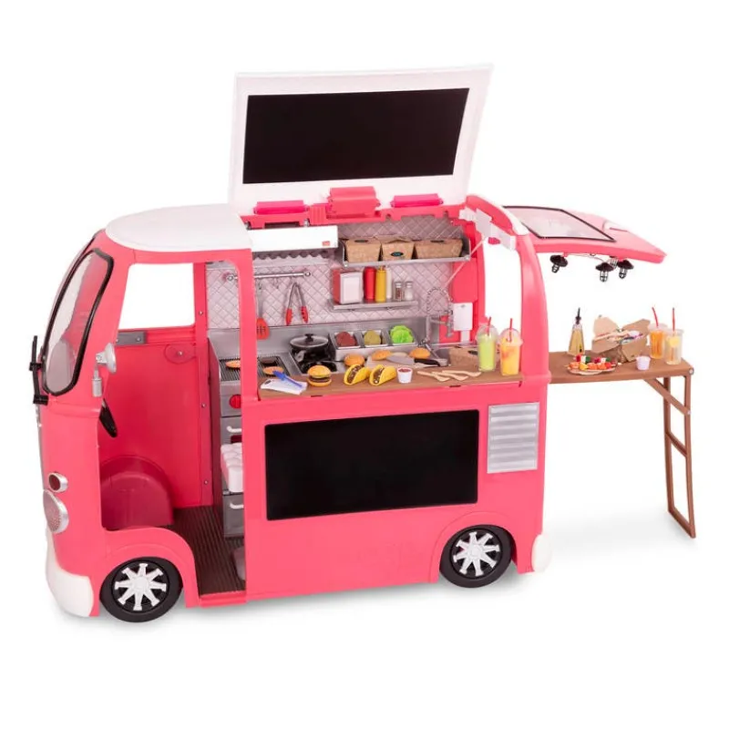 El Camión de Comida de Our Generation es un set completo con accesorios que simulan la venta de comida callejera. Perfecto para jugar a ser chef y atender clientes en el camión.