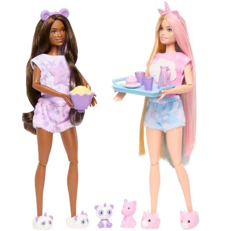 Barbie trae diversión con este pack de pijamada de Unicornio y Pandacornio. Perfecto para noches de historias mágicas y juegos llenos de imaginación. Ideal para pequeñas soñadoras.