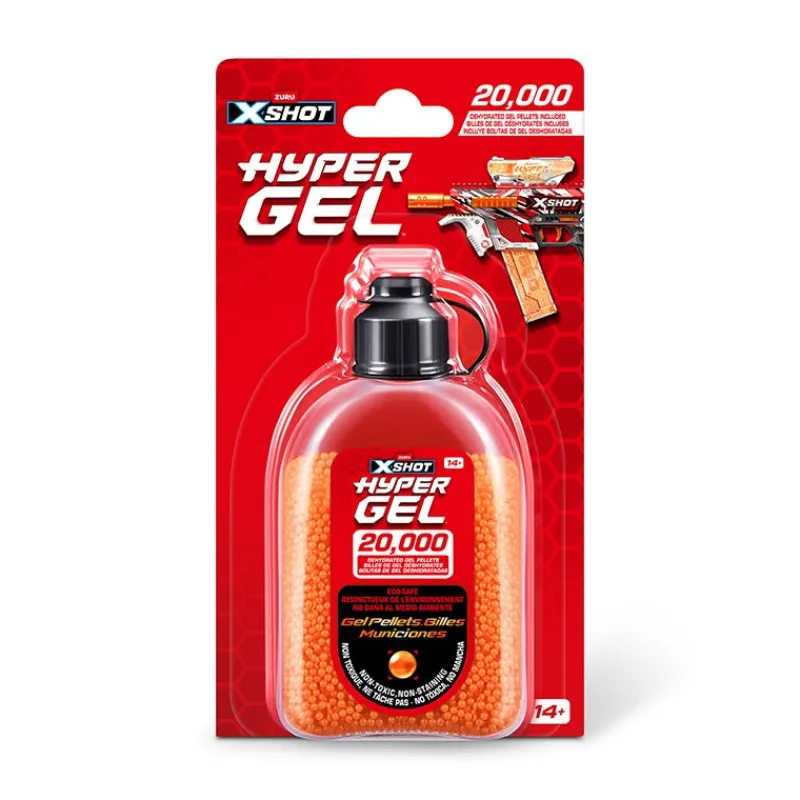 Mantén la diversión sin parar con el Hyper Gel Refill de 20 mil bolitas. Perfecto para recargar tus lanzadores de gel y continuar con la acción en tus batallas al aire libre. Asegura horas de entretenimiento y diversión continua con esta gran cantidad de recargas.