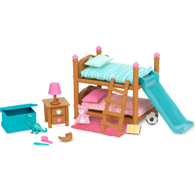 El Set de Litera Dormitorio de Lil Woodzeez es perfecto para crear habitaciones acogedoras para las figuras. Incluye detalles y accesorios para hacer del juego una experiencia realista.