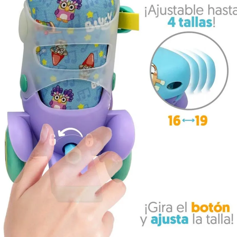 Aprende a patinar con los Patines Entrenadores de Bluey. Con un diseño colorido y ajustable, son perfectos para los pequeños principiantes que quieren disfrutar de la diversión sobre ruedas de forma segura y cómoda. Ideal para fans de Bluey y amantes del deporte.