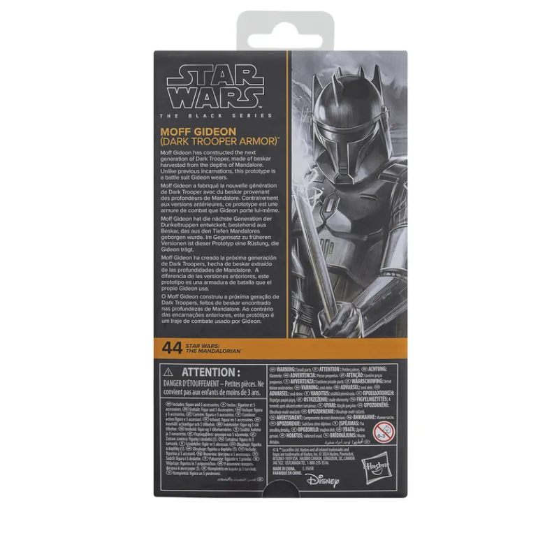 La línea Star Wars The Black Series incluye figuras, vehículos y artículos para juego de rol inspirados en los más de 40 años de legado que nos ha dado la galaxia de Star Wars, para que los fans puedan recrear escenas galácticas de los cómics, las películas y las series con fidelidad. Esta figura Star Wars está diseñada para parecerse a Moff Gideon (Dark Trooper Armor) de la serie Star Wars: The Mandalorian. Con características y detalles excelentes, la línea The Black Series personifica la calidad y el realismo que los devotos de Star Wars adoran. ¡Que la Fuerza te acompañe! (Los productos adicionales se venden por separado. Sujeto a disponibilidad).